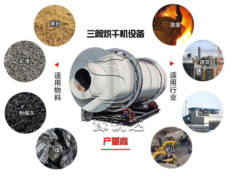 滾筒烘干機(jī)(rattler-drying machinery)是傳統(tǒng)的干燥設(shè)備之一,設(shè)備運(yùn)轉(zhuǎn)可靠,操作彈性大、適應(yīng)性強(qiáng)、處理能力大,廣泛應(yīng)用